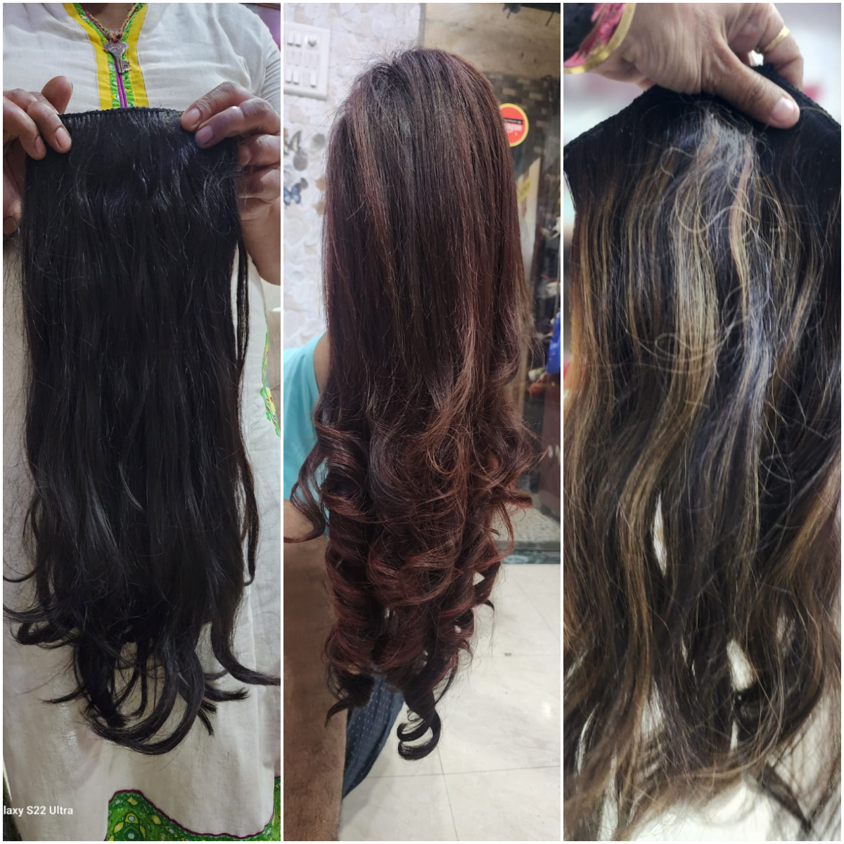 Hair Extensions: Enhance your look with our premium real hair extensions, available in various lengths, colors, and styles.